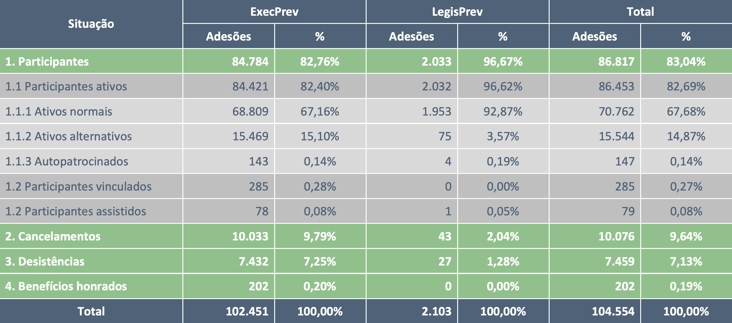 1.1. Participantes ativos: soma dos participantes ativos normais, ativos alternativos e autopatrocinados.
