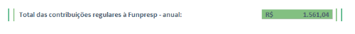 Ao longo de 2022, se você contribuiu com a alíquota máxima (de 8,5%) à Funpresp sobre o Salário de Participação de R$ 1.412,78, o valor total destinado à sua previdência complementar na Funpresp foi de R$ 1.561,04. Então, preencha o campo correspondente.
