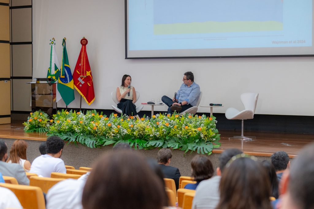 Com moderação da diretora de Seguridade da Funpresp-Exe, Regina Dias, o painel discutiu como as mudanças demográficas e a longevidade afetam a sociedade, a previdência e o mercado de trabalho. O convidado foi Cássio Turra, professor titular no Departamento de Demografia, Cedeplar, da Universidade Federal de Minas Gerais (UFMG) e participante da Funpresp. O especialista destacou a importância de se discutir a dinâmica demográfica no contexto da previdência.