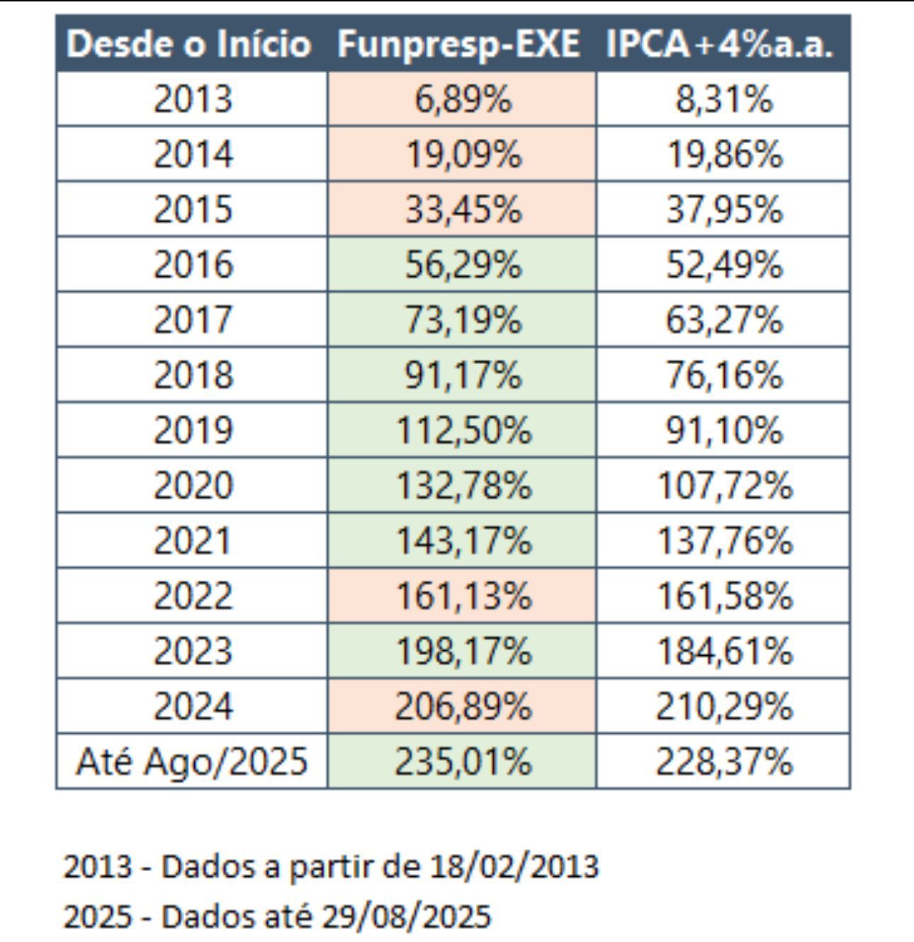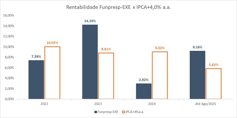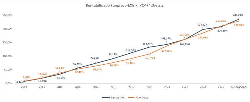 A Fundação anunciou nesta quinta-feira (04/09) os resultados da sua carteira de investimentos até agosto de 2025. No acumulado do ano, a rentabilidade alcançou 9,16%, acima do índice de referência buscado no período de 5,82% (IPCA+4% ao ano).