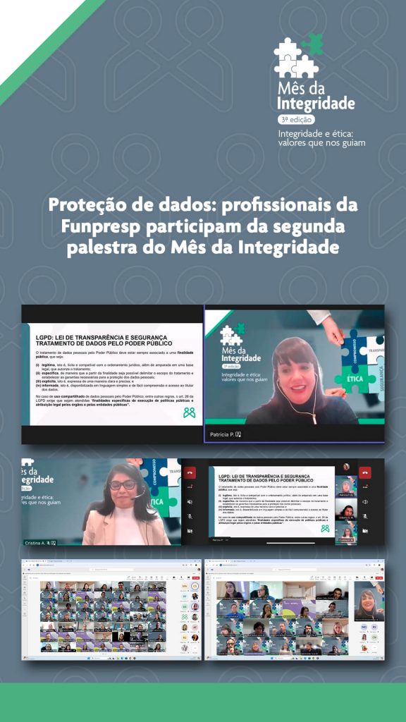 O evento contou com uma sessão de perguntas e respostas, em que os profissionais da Fundação, já engajados com os temas de Ética e Integridade, enriqueceram o debate. A professora enfatizou a importância do treinamento e da conscientização tanto dos titulares dos dados quanto dos responsáveis por informações confidenciais, destacando que estas não devem ser compartilhadas sem necessidade ou além do estritamente necessário.