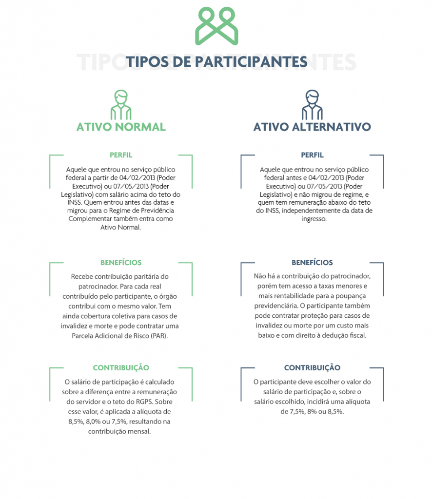 Os planos da Funpresp são exclusivos para o servidor público federal dos poderes Executivo e Legislativo, sendo assim, a Fundação conta com dois tipos de participante para cada plano, o ExecPrev e o LegisPrev.